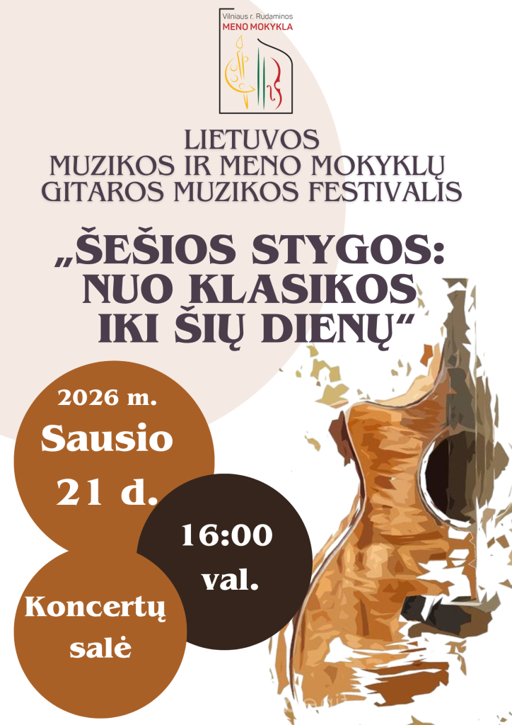 • Kviečiame dalyvauti Lietuvos muzikos ir meno mokyklų gitaros muzikos festivalyje „Šešios stygos: nuo klasikos iki šių dienų”