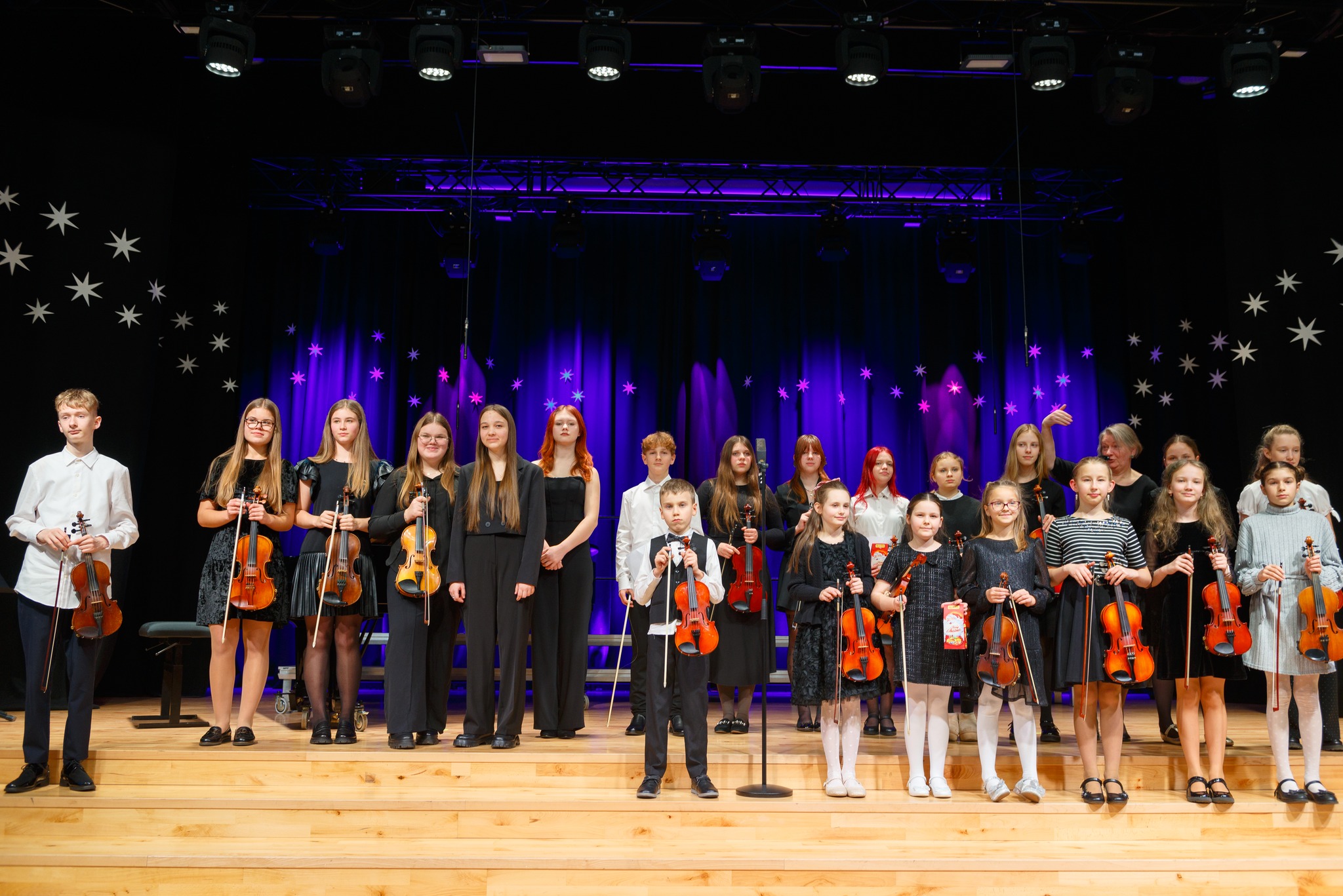 Gruodžio 18 dieną mūsų mokyklą užliejo šventinė nuotaika – įvyko smuiko dalyko mokinių kalėdinis koncertas. Šio jaukaus ir iškilmingo vakaro metu skambėjo nuoširdžiai atliekami kūriniai, pripildę salę šilumos, ramybės ir artėjančių švenčių dvasios.